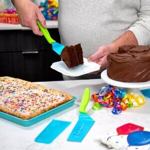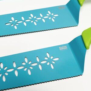 Slice and serve with one swipe! This handy set of knives features a serrated edge for slicing up brownies, pies, cakes, pizza, and more, while the silicone coating and cutout design helps easily release food when serving. (We love a good twofer!) From Kuhn Rikon.