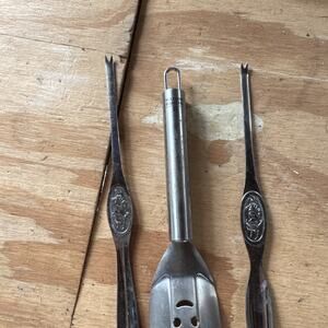 Kuhn Rikon Switzerland Stainless Hanging Fast Grab Bottle Opener & Seafood Forks