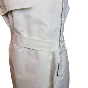 Architectural and refined, this stunning Kuho sleeveless dress features sculptural tailoring and a modern asymmetrical zip front—blending classic trench elements with a contemporary moto wrap silhouette. Crafted in Korea circa 2012, it represents the structured minimalism the brand is known for.