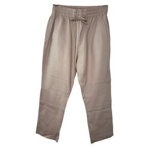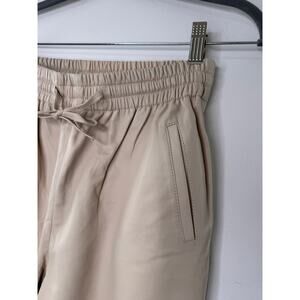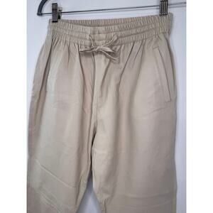 Kujten Marl Beige Leather Trousers High-Rise Elastic Waistband Size Large L NEW