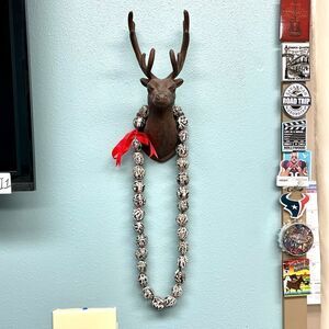 Approx. length is 17.5", although the red ribbon makes it adjustable to increase the length. Authentic from Hawaii. Historically, this type of lei was worn by royalty, but now they are worn in hula performances and given as gifts. Whitewashed
