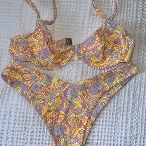 Ditzy Underwire Bra Bikini Top - Whipped Wonder - Medium + Cheeky V Bikini Bottom - Whipped Wonder - Small