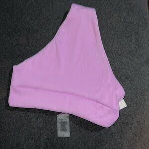 Chic ribbed bikini bottom. Soft light pink hue. Perfect for beach days.