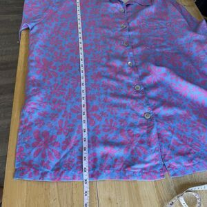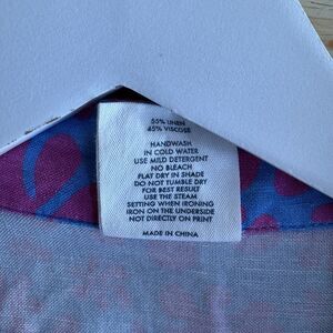 This linen-blend cover-up shirt features a tropical print and an oversized silhouette for a comfortable fit from the beach to the boardwalk and beyond.