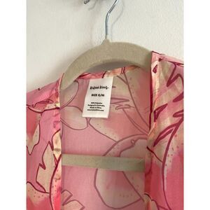 Kulani Kinis Pink Floral Tropical Print Robe/Cover-up/Kimono Size S/M