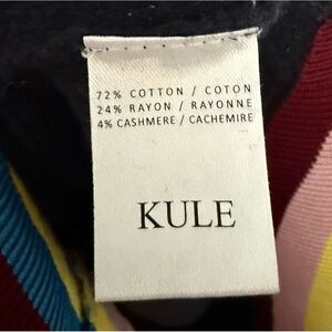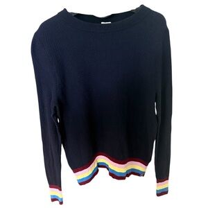 Kule Navy Blue Cashmere Blend Crewneck Sweater Rainbow Striped Cuff Size Small