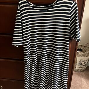 Rarely worn dress from Kule in navy and cream stripes. Size large. 100% cotton. Made in Portugal.