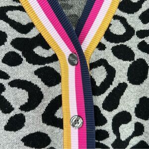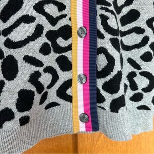 Kule The Cat Leopard Print Intarsia Cardigan Sweater Size Small