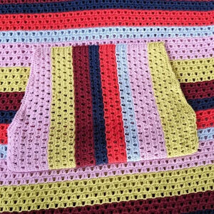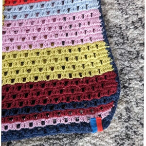 Throw some color and texture into your summer wardrobe with the Harmonie! Crocheted from a cotton blend in rainbow hues, it's a showstopping piece that is sure to brighten your day.