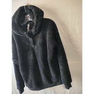 Kulkalux Pullover Hoodie Mens Medium Black Sherpa Fleece Plush Soft Hooded