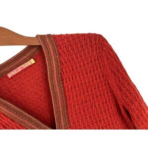 Kuna Alpaca Wool Textured Knit Sweater Brown Trim V-Neck Long Sleeve Y2K