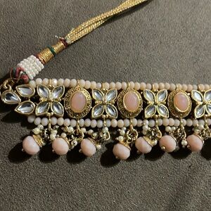 Kundan peach color choker, pull cord, beautiful , goldtone in great cond