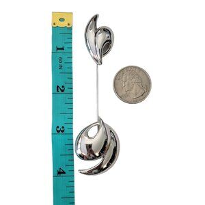 Kunio Matsumoto Trifari Swirl Silver Tone Jabot-Style Lapel Stick Pin, Signed E999