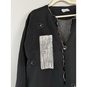 Kunky's Hand Painted Flowers Art To Wear Cardigan Sweatshirt Black Size Medium