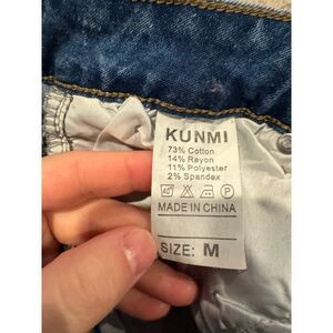 "Kunmi Jeans Women's, Size Medium. These stylish jeans offer a comfortable fit and trendy look, perfect for casual wear. Made with soft, durable fabric and a flattering silhouette. Gently worn and in great condition!"