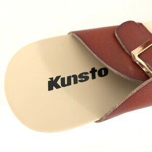 Kunsto Womens Sandals Strappy Braided Faux Leather Slides Thong Brown 42 US 10