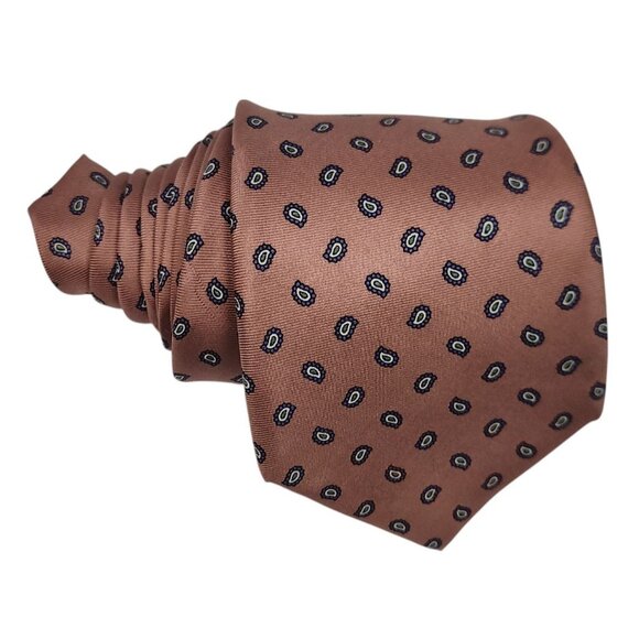 Kuppenheimer Vintage Silk Necktie Italian Pinkish Brown & Blue Geometric Pattern