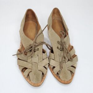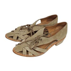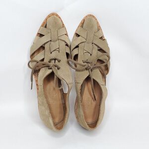 Kupuri Suede Strappy Sandals 36 5 Criss Cross Lace Up Point Toe Tan Brown Boho