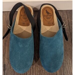 Excellent pre-owned condition. Kurier Portland Maine teal suede clogs. Size 37 which is size 6.5