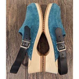Kurier Teal Suede Clogs Handmade Portland Maine Size 6.5
