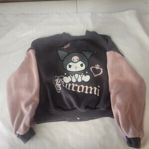Kuromi Baseball Jacket Size 8 10 Black Pink Snap Long Sleeves 40 in B23