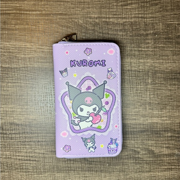 Cute Kuromi wallet with playful design. Features a zip closure. Perfect for fans. Has two compartments and a zipper compartment dividing them. NWOT