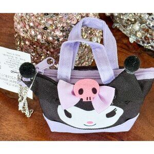 This chic Kuromi Small Coin Purse from Sanrio is perfect for anyone on the go. It comes with an adjustable chain and a secure zipper closure. Brand new with tags.