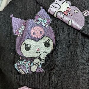 Stylish black jacket featuring a playful cartoon design. Accented with a white collar for a chic look. Perfect for adding a touch of fun to your wardrobe.