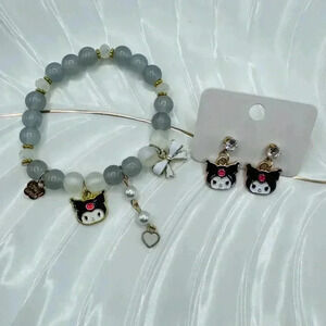 Kuromi Teen Size Beaded Bracelet and Earring Bundle