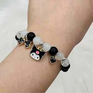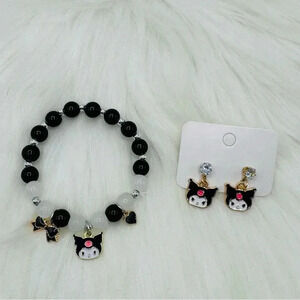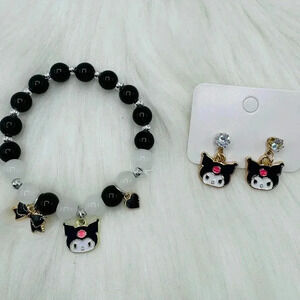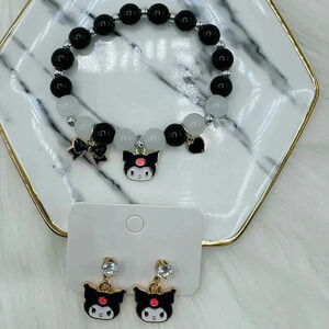 Kuromi Teen Size black Beaded Bracelet and Earring Bundle