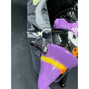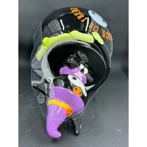 This Kuromi Trick Or Treat Candy Dish is the perfect addition to your Halloween decor. Made by Blue Sky in 2024, this candy dish is designed to be both festive and functional. The black color and spooky design make it a great choice for Halloween night or any other occasion. The dish is perfect for serving candy or other small treats and is sure to impress your guests. It is not handmade and is not personalized. This candy dish is a must-have for any collector of holiday and seasonal items.