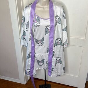Kuromi by Sanrio Sleepwear Set: Kimono-Style Robe, Cami, and Sleep Shorts Small