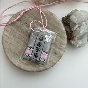 An omamori is a Japanese good luck charm. They are believed to offer protection and attract good fortune.