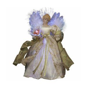 Kurt Adler Angel Fiber Optic Light Up Christmas Tree Topper NIB ( New in box) Ivory & Gold