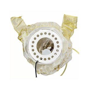~ Dressed in a long, ivory gown accented by gold ribbon, this angel has blonde hair, iridescent lit wings and not only lights up, but is animated her wings and arms gracefully move when plugged in. 60-inch lead wire. Includes 1 CUL adapter and 1 halogen replacement bulb. Attaches to tree by a plastic cone base. For indoor use only