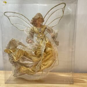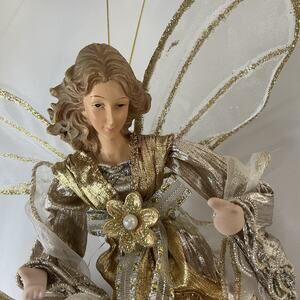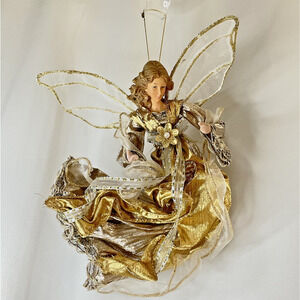 Kurt Adler Angel Tree Topper/Ornament Gold & Silver Wings Ribbon Gown 9" x 8"