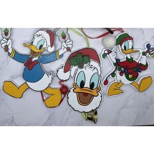 Set of four Kurt Adler collection ornaments, one pull string ornament. The set includes 1 Mickey & Minnie, and 3 Donald, and one Donald is pull string.