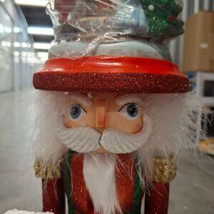 This enchanting nutcracker tells a tale of holiday cheer. With a Christmas scene atop its glittering top hat, it brings nostalgic warmth to any festive decor.
