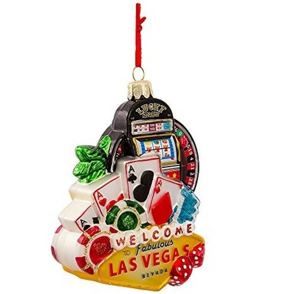🎄Kurt Adler LAS VEGAS 4.65" Glass Christmas Tree Large Ornament City Scapes