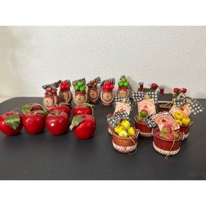 Kurt Adler Ornament Lot Apple Buckets, Barrels, Buildings, Apple Ornaments Vtg
