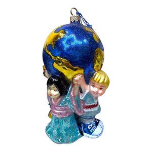 Kurt Adler Planet Hope Glass Ornament Joy To The World Children Peace Earth NEW