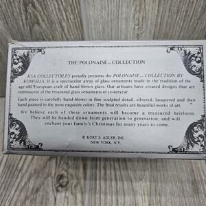 The Kurt Adler Polonaise Clown GP303 Glass Ornament is a beautifully handcrafted and painted clown ornament from Poland. This medium-sized ornament features a retro design with an all-occasion theme, perfect for collectors of art glass and circus memorabilia. The Polonaise collection by Kurt Adler is known for its artist-designed pieces, and this ornament is no exception, making it a unique and vintage addition to any holiday or seasonal decor.