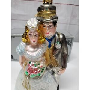 Kurt Adler Polonaise Komozja Wedding Couple Bride & Groom Glass Ornament w/Box