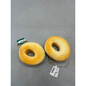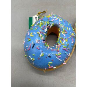 This Kurt Adler Sweet Scoops Blue Sprinkle Donut Ornament set includes two squishy 3.5" donuts. Despite a minor rip as shown in photos, the product is new.