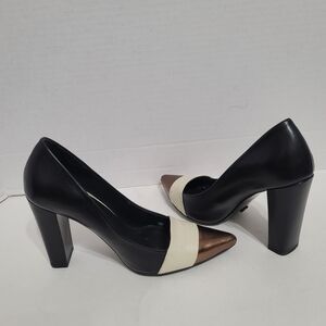 Kurt Geiger Black, Cream, and Bronze Block Heels Made In Spain Sz38. Z17A