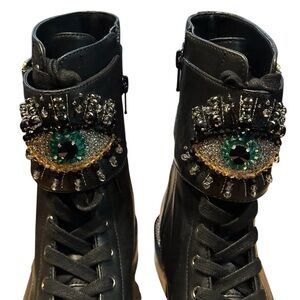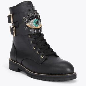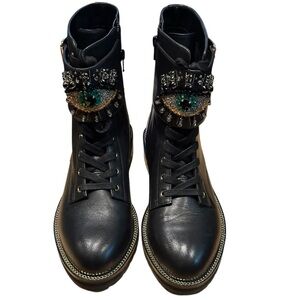 Kurt Geiger Black Leather Sutton Rhinestone Embellished Eye Combat Boot Size 6