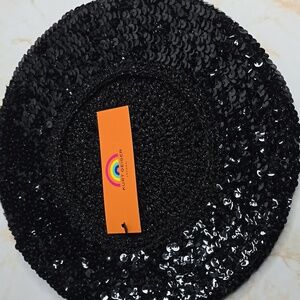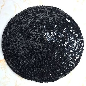 Add a touch of glamour to your outfit with this elegant black sequin beret. Perfect for any occasion.