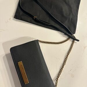 Chic black crossbody with gold accents. Stylish and versatile. Ideal for any outing.