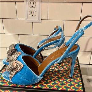 Kurt Geiger Blue Velvet Heels with Rhinestone Bow