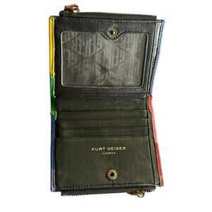 Brighten up your day with this dazzling Kurt Geiger Multicolor Striped Wallet! Bursting with cheerful shades of pink, purple, blue, green, and yellow, this eye-catching accessory adds a pop of joy to any outfit. The sleek design features the brand’s signature craftsmanship and just the right amount of shine, making it perfect for carrying your essentials in style. Compact yet practical, it slips easily into your bag while standing out with bold, fashion-forward flair.
